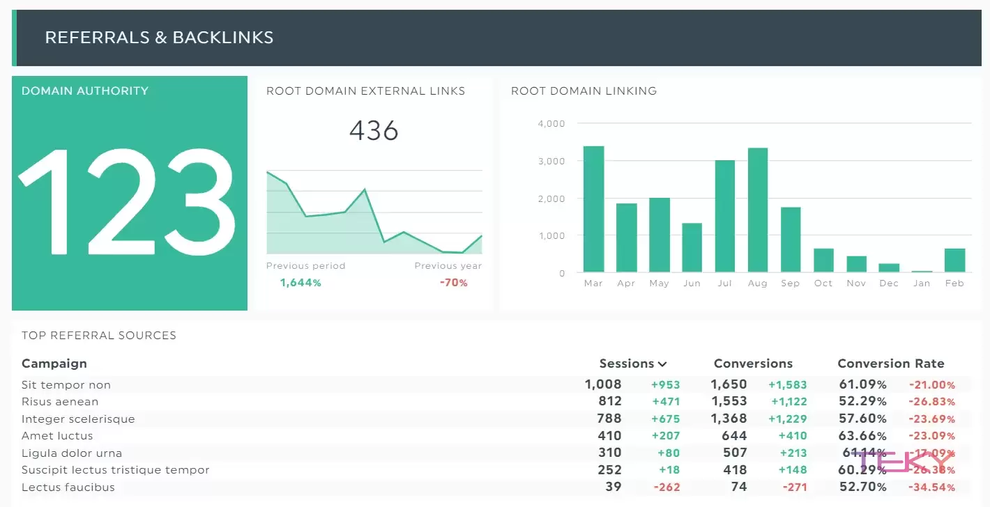 El número de backlinks recibidos también es un KPI clave. Los enlaces externos de calidad son un indicativo de la relevancia y confiabilidad de tu sitio, lo que a su vez impacta positivamente en su posicionamiento.